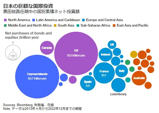 黒田日銀総裁の在任中の10年間で日本から1,550兆円が(特にアメリカへ)流出した。(図3)